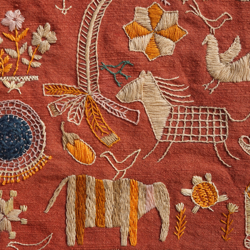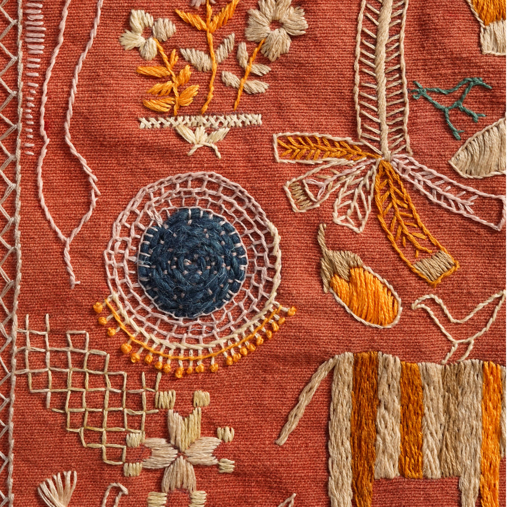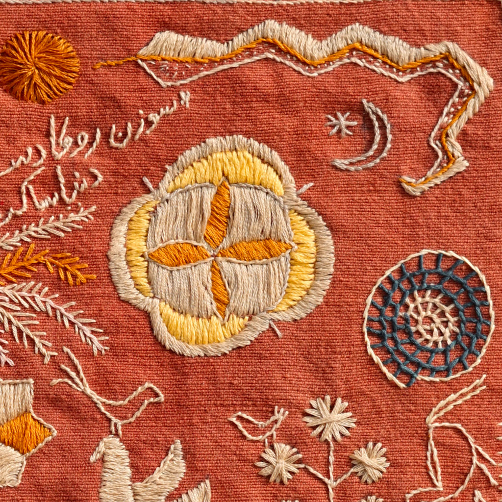 Important Note on Personalization: To celebrate the tradition of Sainchi Phulkari, the text and some of the tiny figures and birds seen in my original tapestry were drawn freestyle and are not included in the printed pattern. These elements are meant to inspire you to add your own personal symbols, words, or motifs as you stitch!