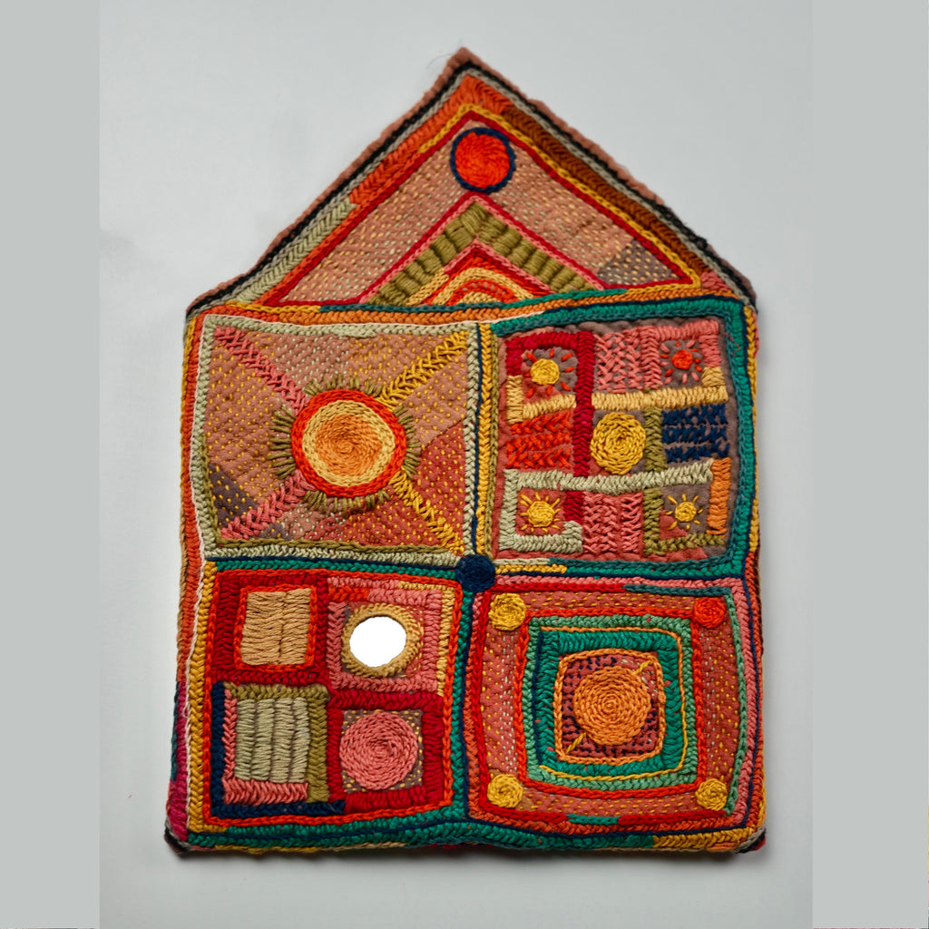 Sindhi Thari embroidery traditions from Pakistan inspire this design. Originating in the Tharparkar region and shaped by centuries of movement across desert landscapes. It is recognized for its bold geometric motifs, vibrant cotton threads, rhythmic hand stitching, and frequent use of mirror work. Rooted in the practices of nomadic and semi-nomadic communities, Thari embroidery reflects a deep connection to land, mobility, and cultural identity. Through this kit, I aim to honor and revive these traditions, telling a story of migration, resilience, and belonging through every stitch.