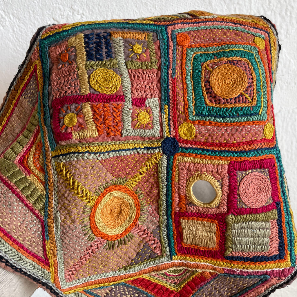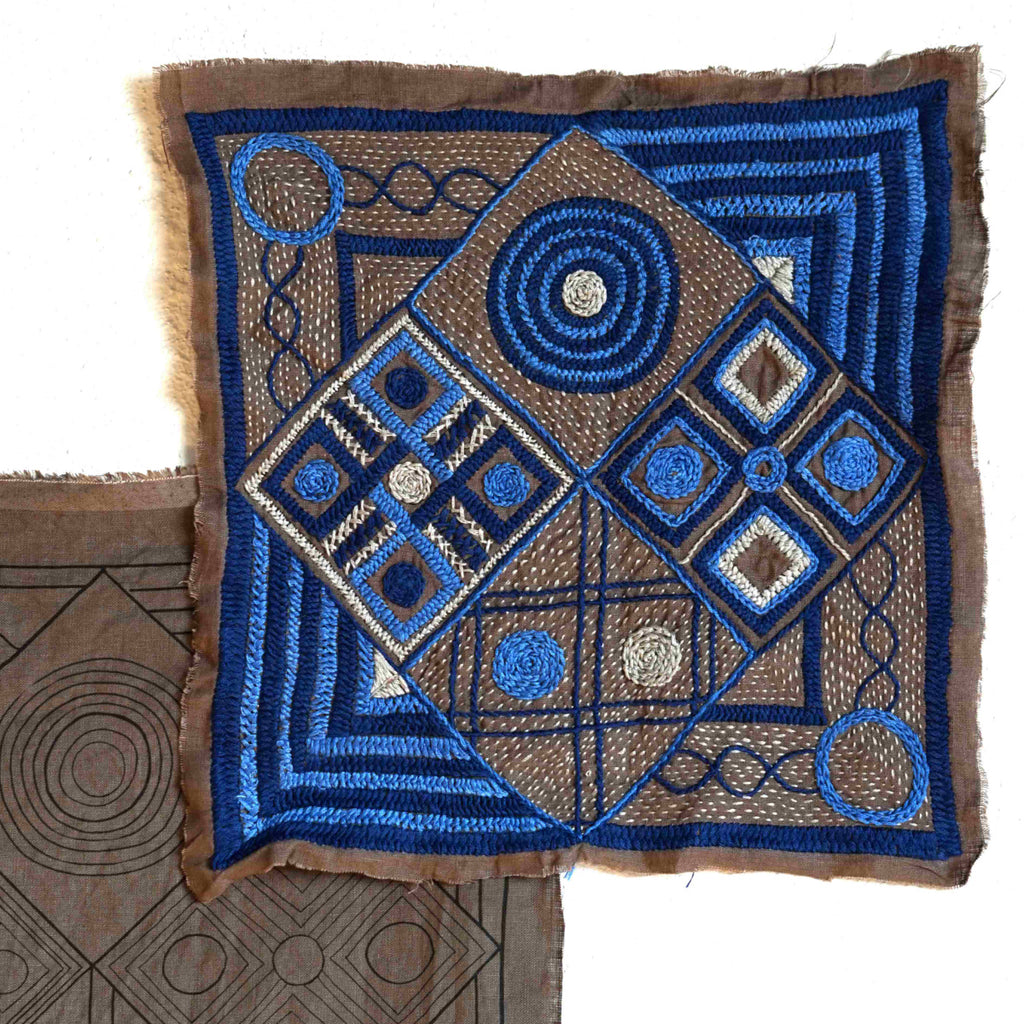 Gul will guide participants through mirror work, a hallmark of Sindhi embroidery, along with other traditional stitches commonly found in regional embroideries. The workshop will take place in the studio at Startup Barreiro. The kit is designed to include all the information needed to continue and complete the embroidery at home after the class.